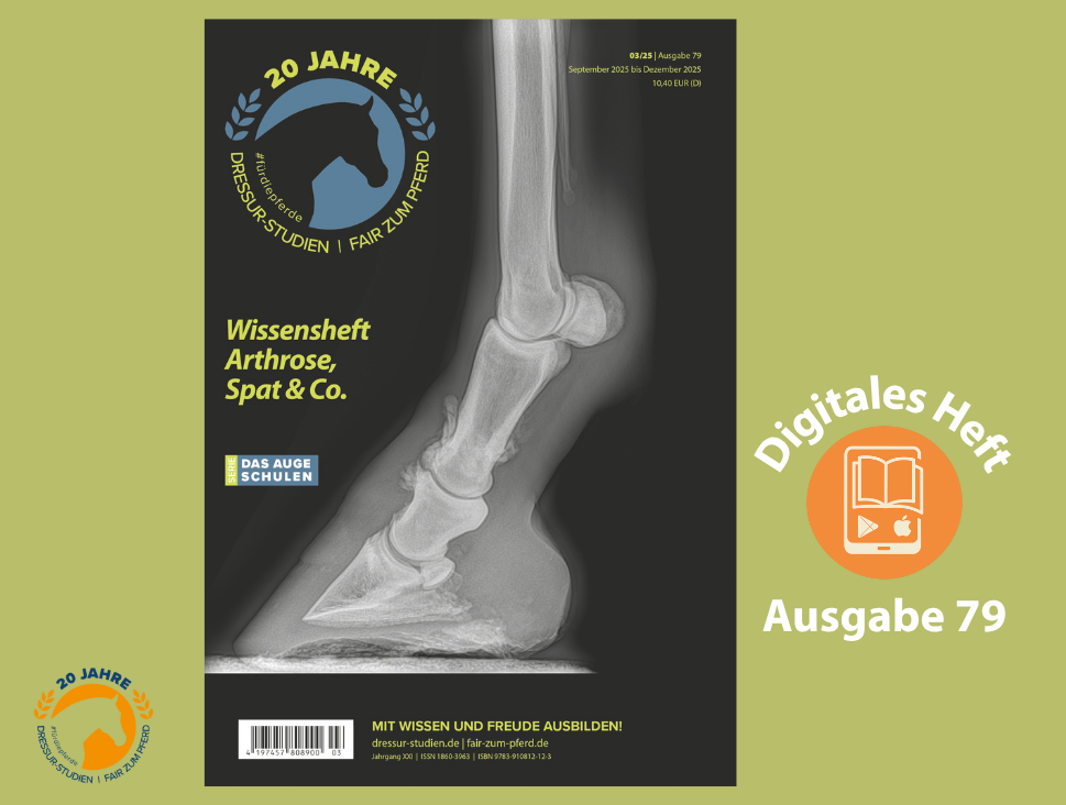 Arthrose, Spat & Co. – Diagnosen, die Pferdebesitzer erst einmal erschrecken. Doch es gibt Hoffnung: Mit dem passenden Management lässt sich der Krankheitsverlauf bremsen – und die gemeinsame Zeit im Sattel oder am Boden ist wertvoll. In unserem neuen Wissensheft erfährst du, wie sich Arthrose & Co. vorbeugen lassen, welche Behandlungsmöglichkeiten es gibt und wie ein durchdachtes Management den Alltag für Pferd und Reiter erleichtert.