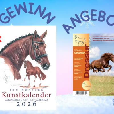 • Geschenkabo ab Heft 1/2026: "Wie sage ich es meinem Pferd? Hilfen am Boden Schritt für Schritt erklärt" (nächstes Heft) Geschenkabo ab Heft 1/2026: "Wie sage ich es meinem Pferd? Hilfen am Boden Schritt für Schritt erklärt" (nächstes Heft) 34,00 € – 56,50 €